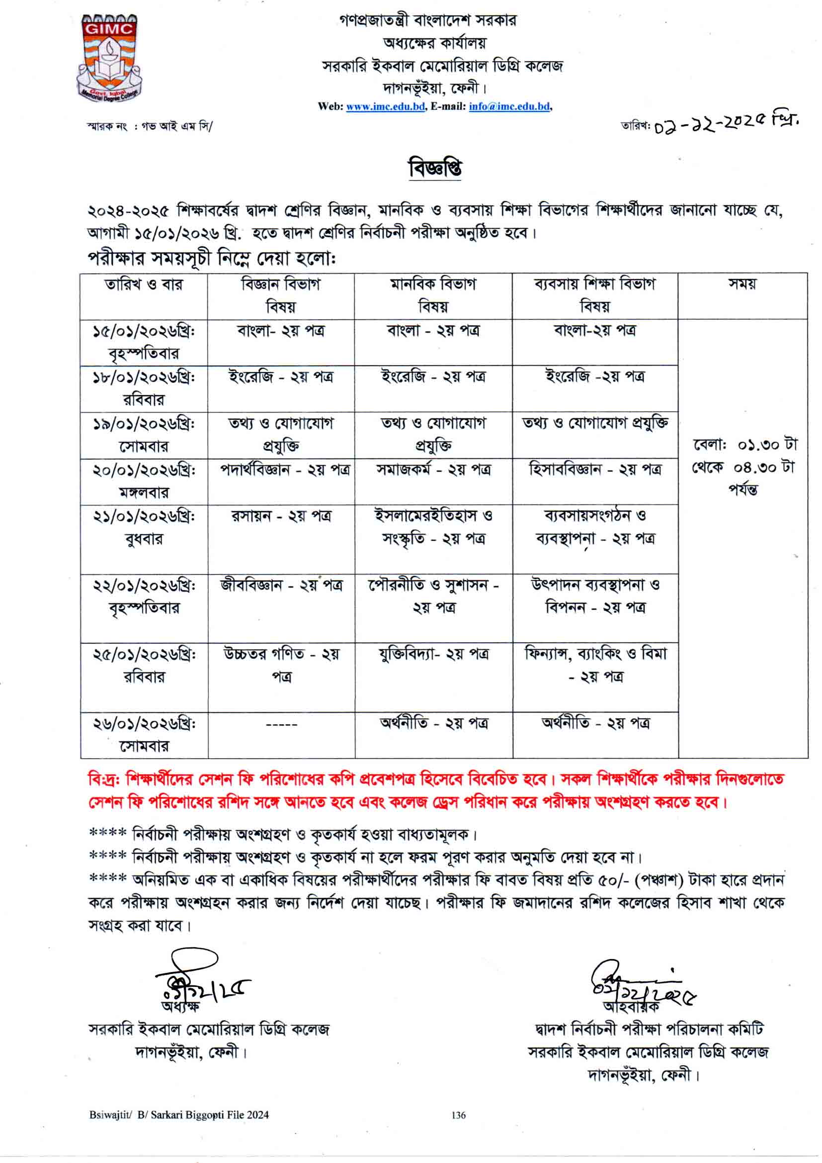 - দ্বাদশ শ্রেণির নির্বাচনী পরীক্ষার রুটিন - ২০২৬