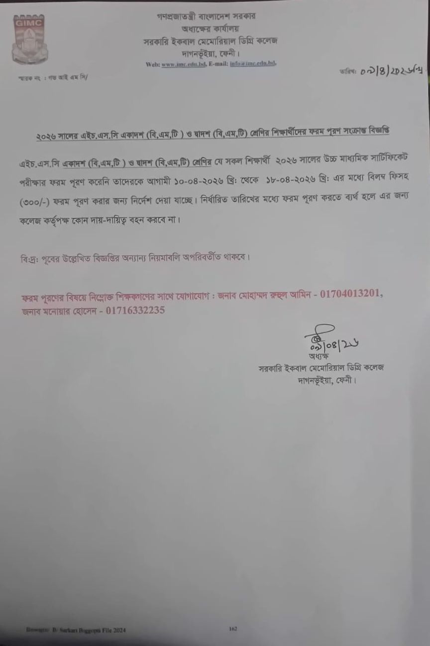 - বি. এম.টি ফরম পূরণের সময়বৃদ্ধি সংক্রান্ত বিজ্ঞপ্তি - ২০২৬