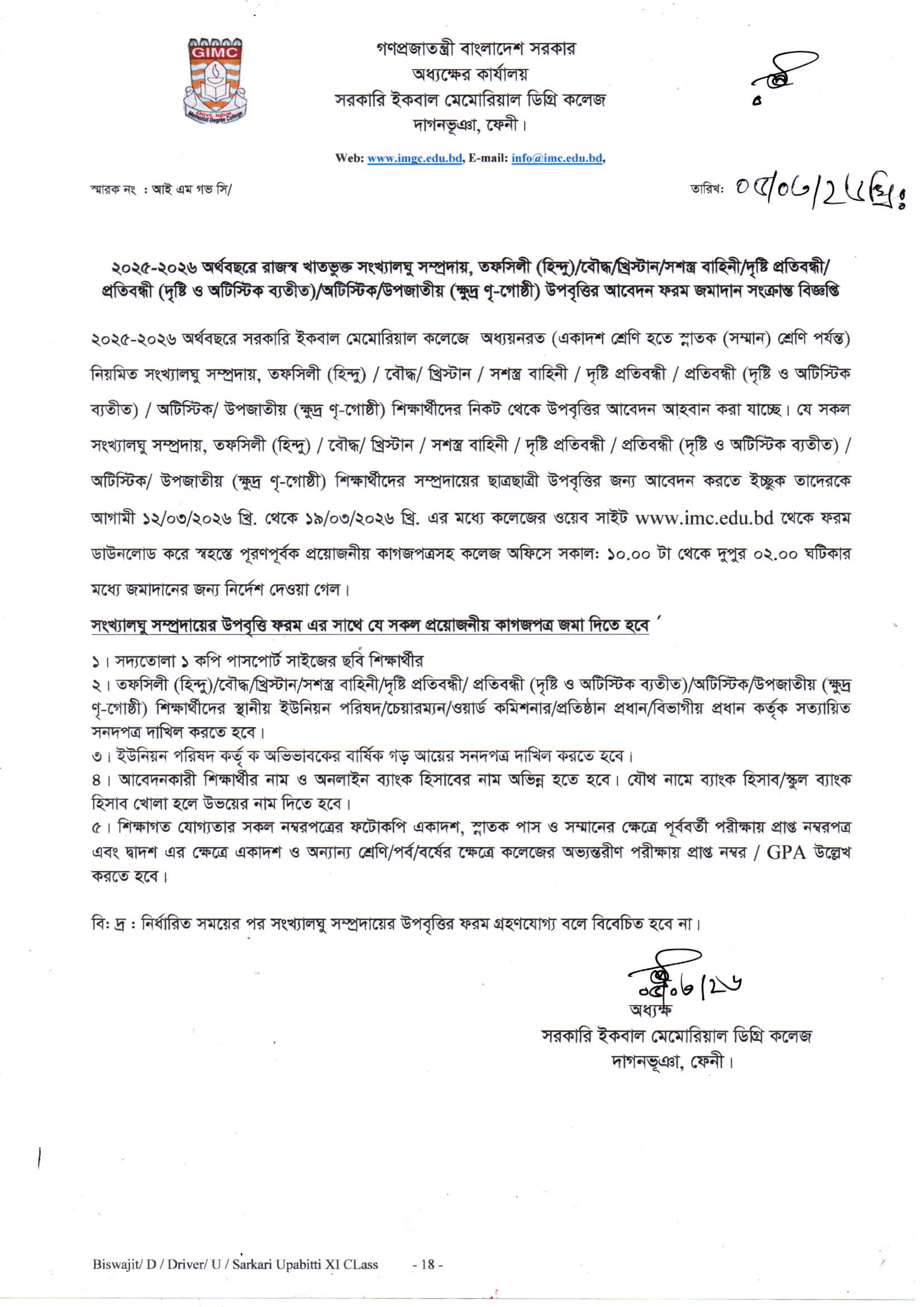 সংখ্যালঘু উপবৃত্তি সংক্রান্ত বিজ্ঞপ্তি - ২০২৬ |