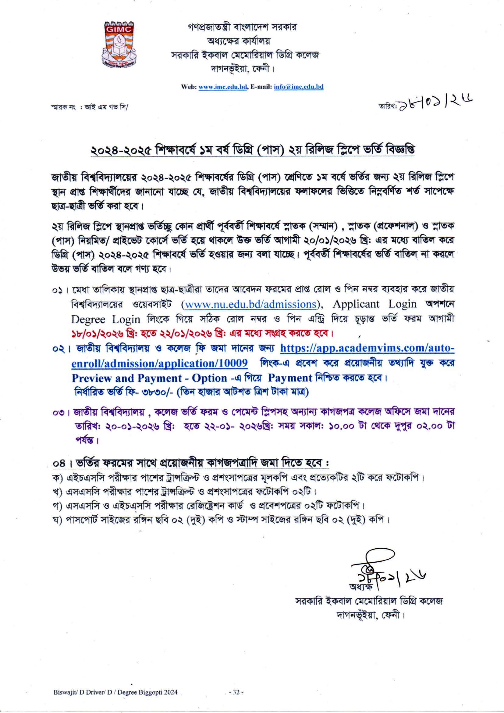 ২০২৩-২০২৪ শিক্ষাবর্ষের স্নাতক (পাস) ১ম মেধা তালিকায় ভর্তি বিজ্ঞপ্তি |
