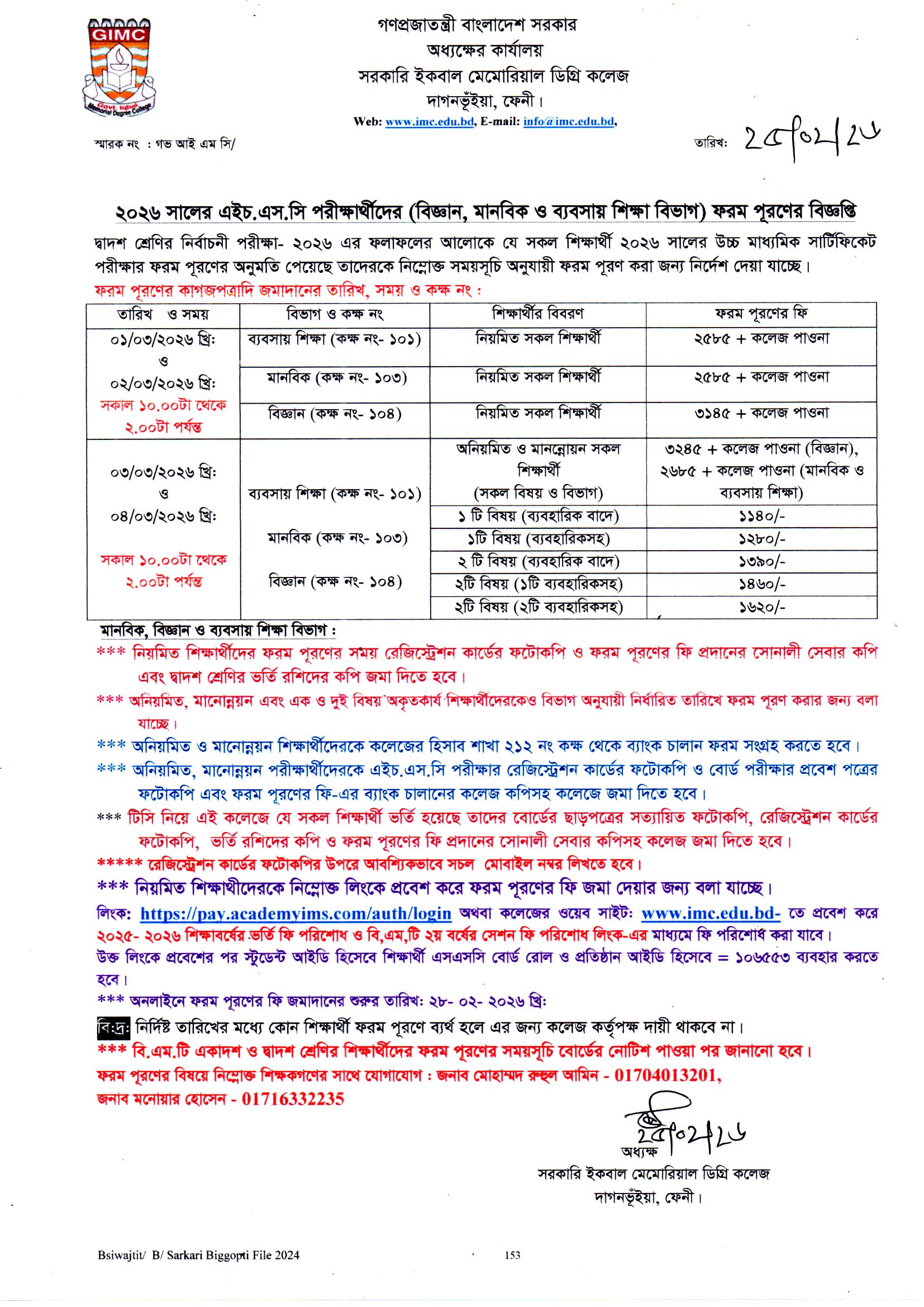 ২০২৬ সালের এইচ.এস.সি ফরম পূরণ সংক্রান্ত বিজ্ঞপ্তি |