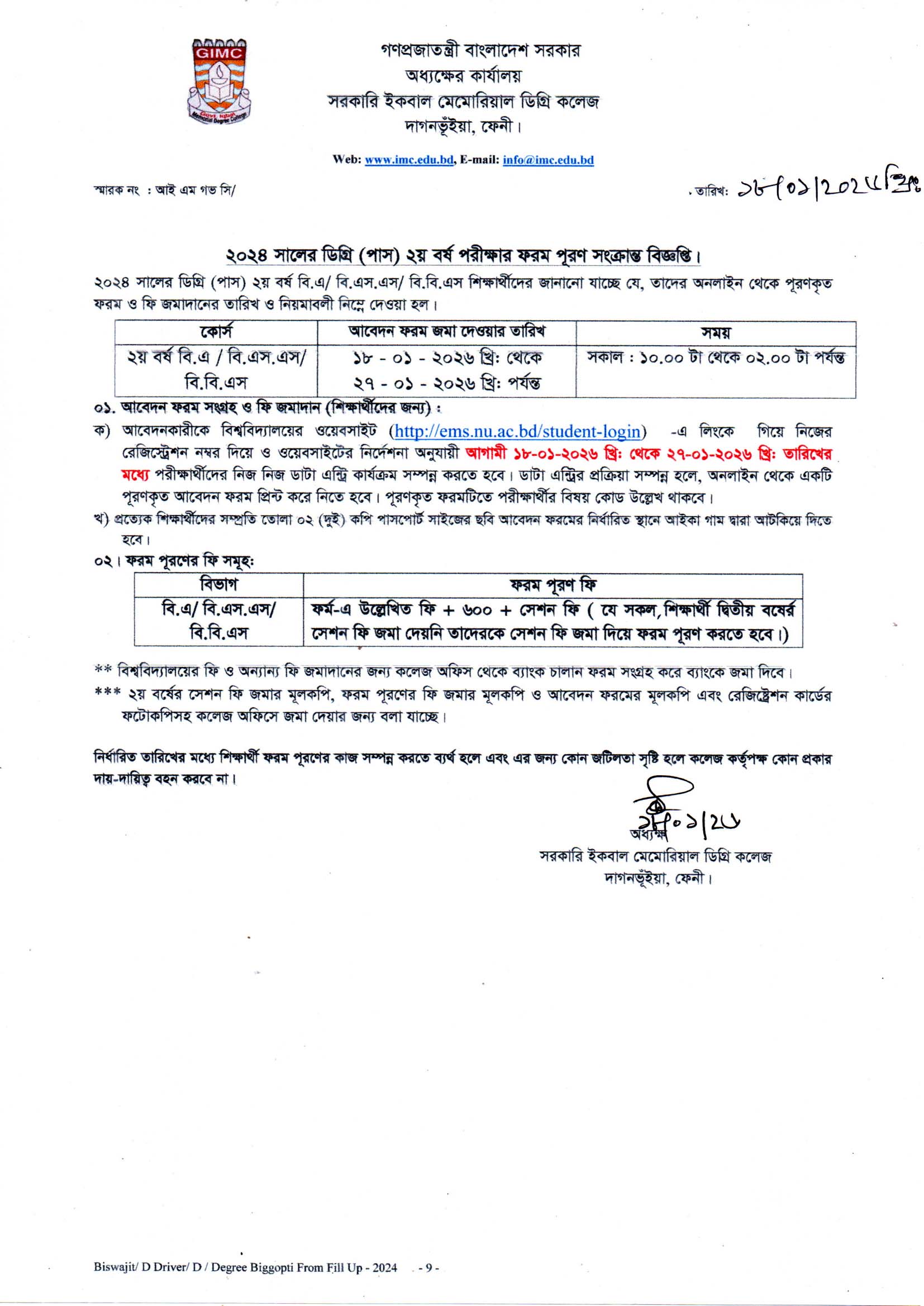 ডিগ্রি (পাস) ২য় বর্ষ পরীক্ষার ফরম পূরণের বিজ্ঞপ্তি - ২০২৬ |