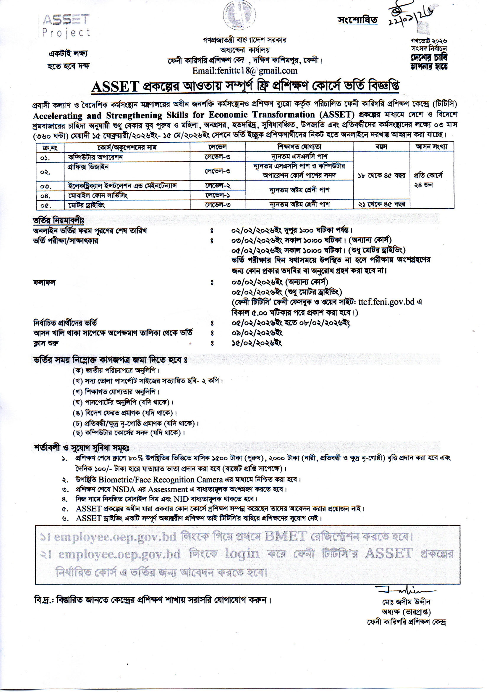 শিক্ষার্থীদের বিভিন্ন কোর্সে প্রশিক্ষণ সংক্রান্ত বিজ্ঞপ্তি |