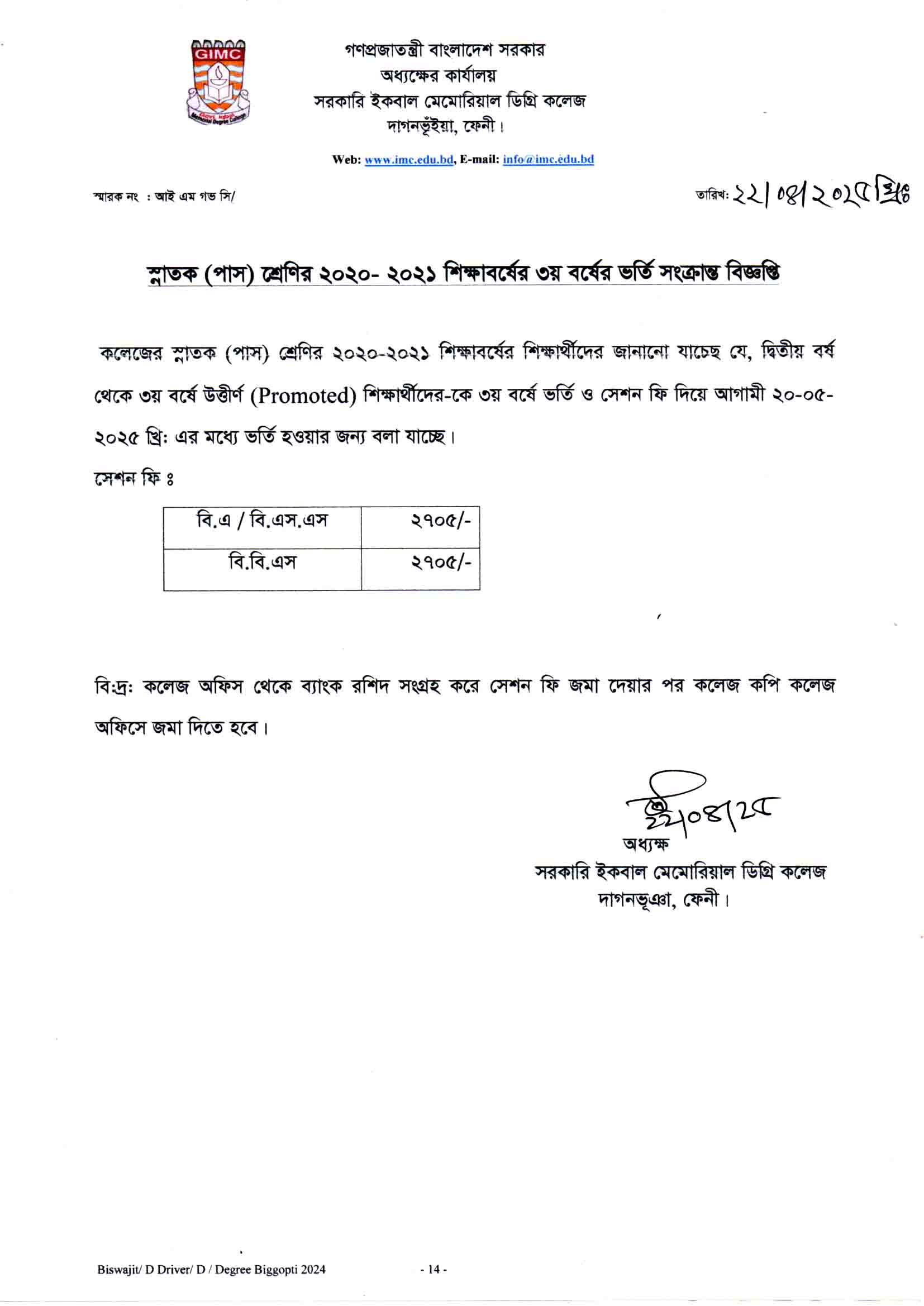 - স্নাতক (পাস) ৩য় বর্ষের সেশন ফি জমা দান সংক্রান্ত বিজ্ঞপ্তি