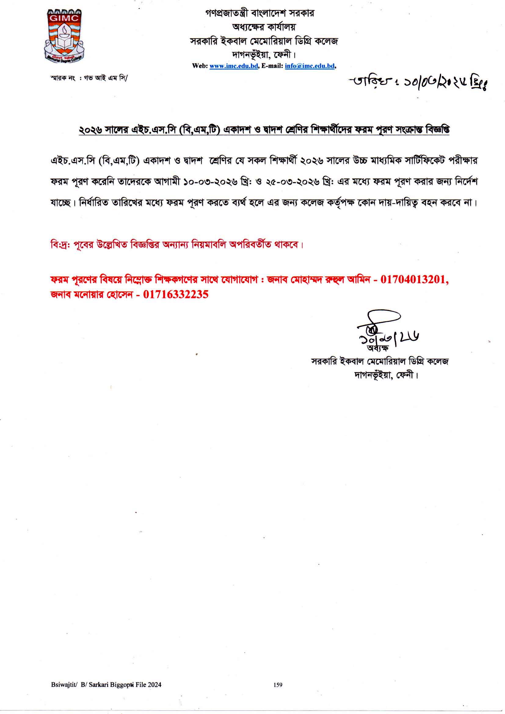 - এইচ.এস.সি (বি,এম,টি) পরীক্ষা - ২০২৬ এর ফরম পূরণের বিজ্ঞপ্তি