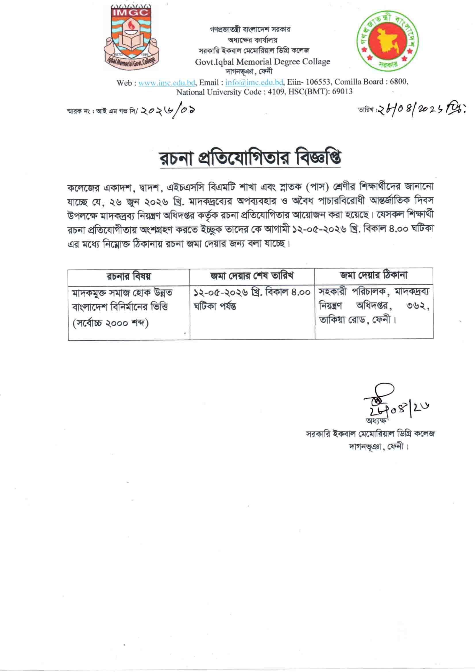 - রচনা প্রতিযোগিতার বিজ্ঞপ্তি